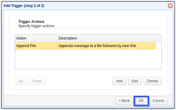 Click each succeeding OK button until you get back to the main screen. Upon reaching the main screen, click the Apply button to finalise the trigger creation process.
