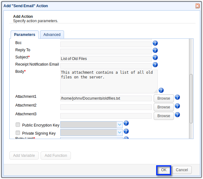 That’s it. Your MFT server would then be ready to scan for old files at the predefined schedule, list all old files that are found, and then email that list to you.